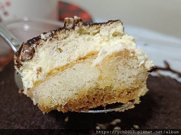 回家一吃,上層馬斯卡彭起斯又香又軟,手指餅乾底層吸飽了酒,蠻溼潤的,