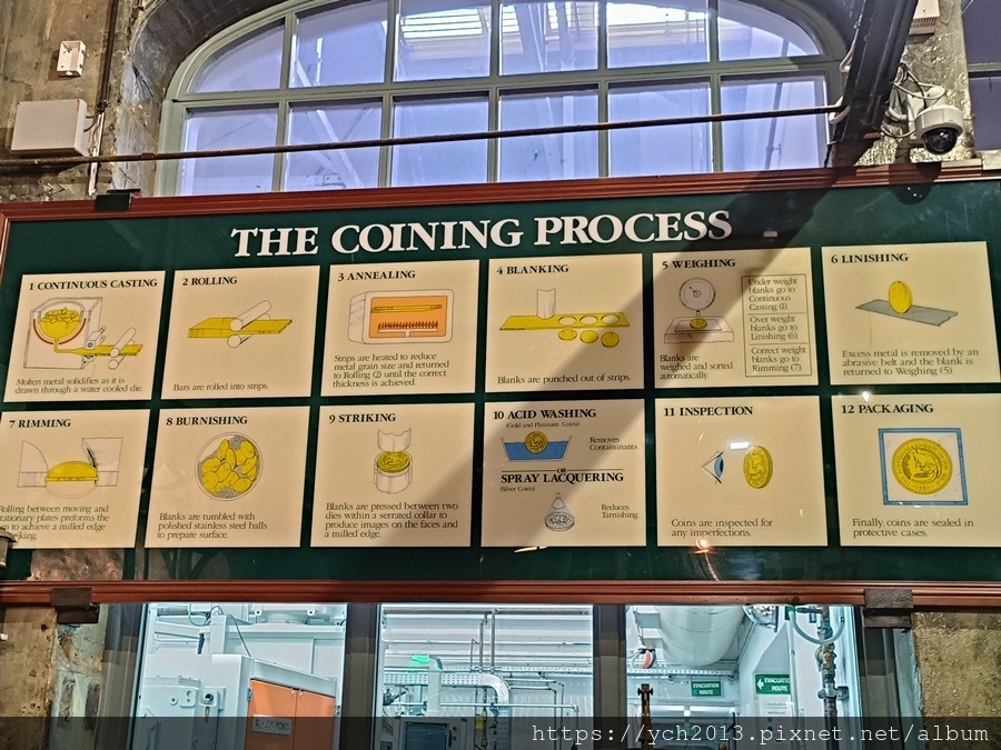 牆上有張鑄造硬幣的說明,有12道程序,相當繁複精細。