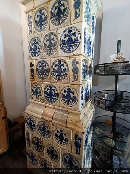 大家進去紀念品店逛逛,我發現這裡也有藍白磁磚的壁爐。