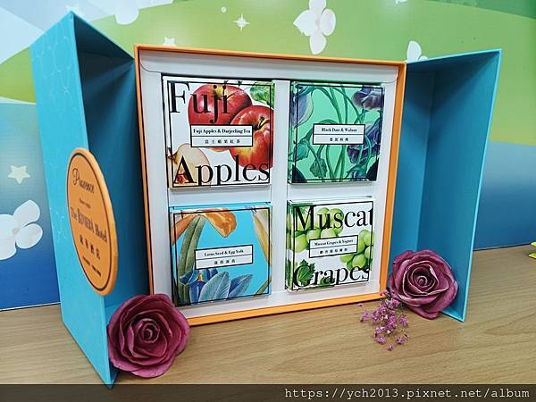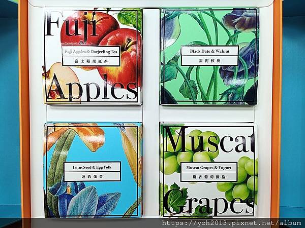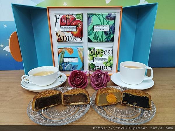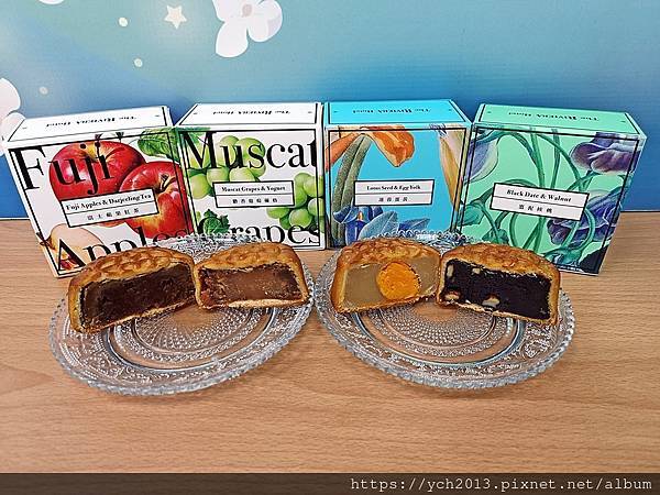 分別是富士蘋果紅茶月餅與麝香葡萄優格月餅,