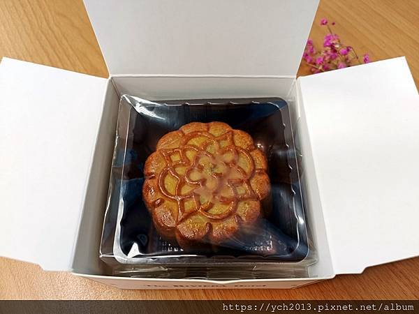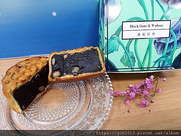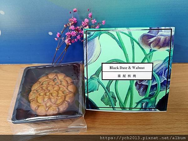 最後是棗泥核桃月餅,這包裝上的花有點像蝶豆的花呢。